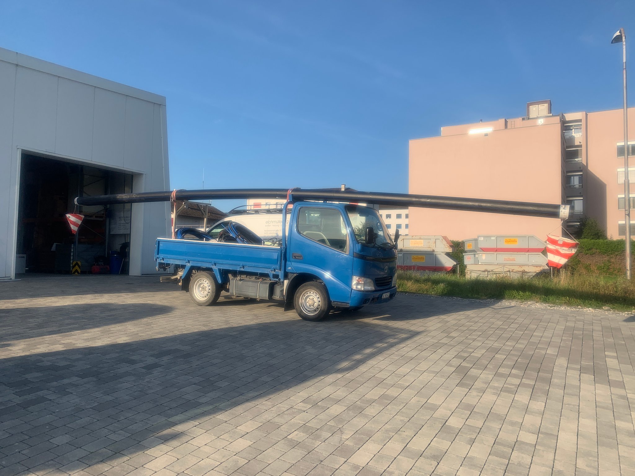 Diese Woche haben wir die Baustelle an der Stossstrasse beim Bahnübergang begonnen. Dank dem Einsatz einer speziellen Bohrmaschine, die das Rohr unter dem Bahnübergang durch bohrt, können wir die Arbeit perfekt ausführen. Anfangs nächster Woche (KW39) sollte die Leitung wieder verbunden sein. Hier einige Eindrücke von der Baustelle.